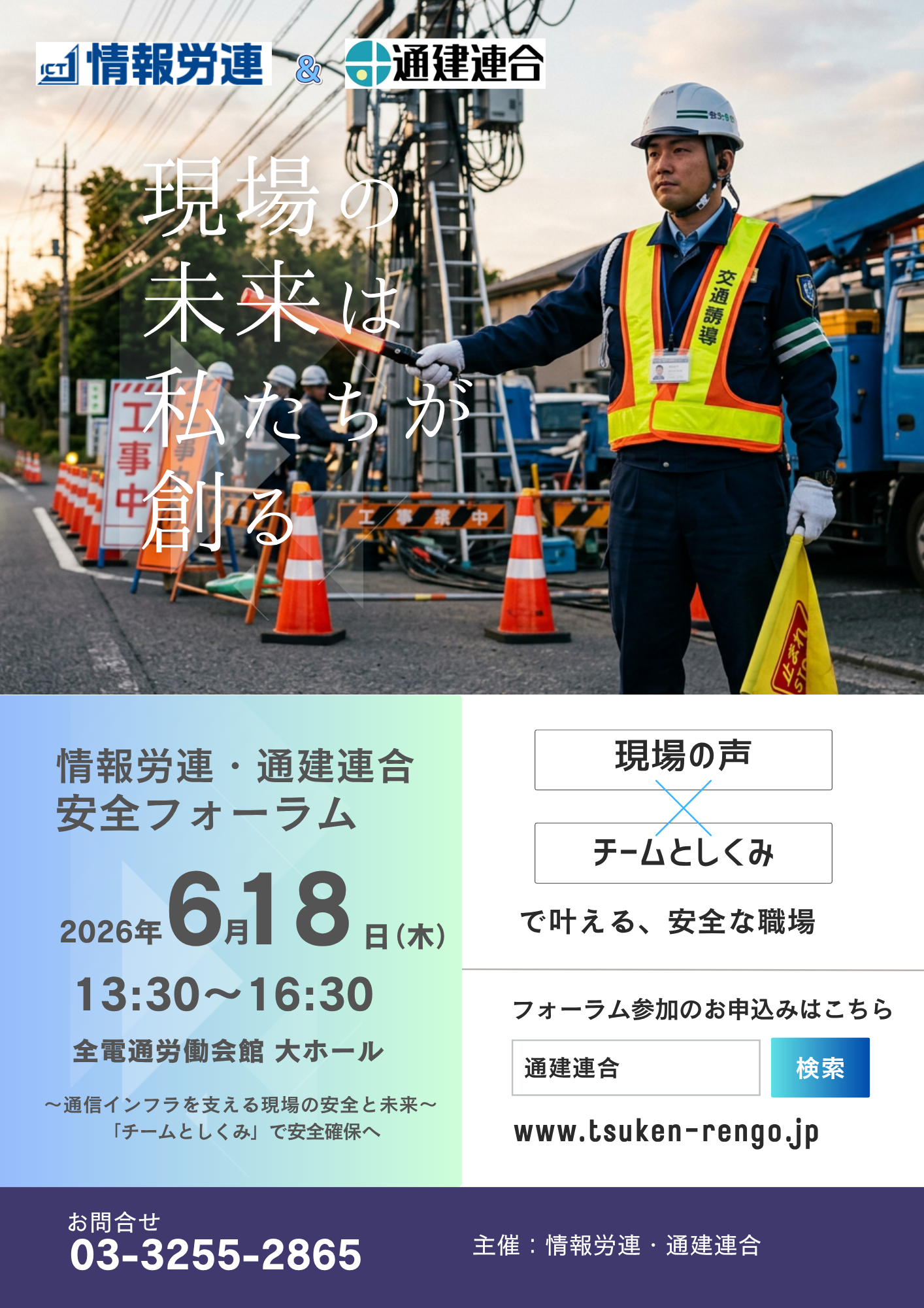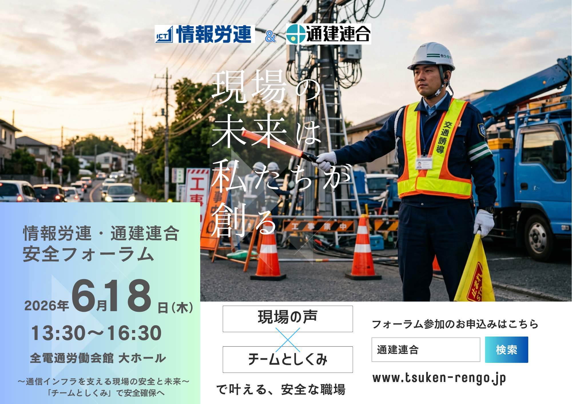 本フォーラムでは、調査から浮き彫りになった「現場の生の声」を共有し、施工現場における作業員と交通誘導員の相互リスペクトの醸成、および「チームとしくみ」で安全を守るための具体的な改善策を議論する。情報労連と協賛し、労働安全衛生および熱中症対策の強化期間に合わせることで、業界全体の安全意識を一段上のステージへ引き上げることを目的とする。- 開催概要